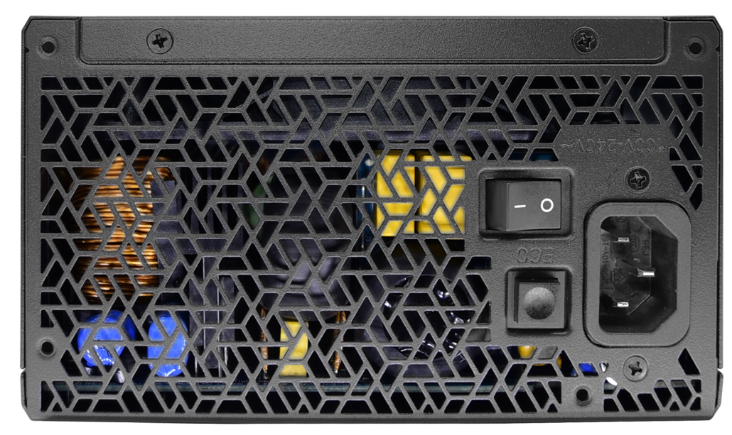 また、奥行125mmの筐体に120mmのファンを搭載。LEADEXシリーズの特徴ともいえる搭載ファンをある一定温度になるとファンが回転を始める「ECO」モードを搭載。ECOモードをオン/オフするスイッチがあるので、ファンを常時回転モードに切り替えることも可能で、使用環境に応じて動作音や冷却能力を調節可能です。