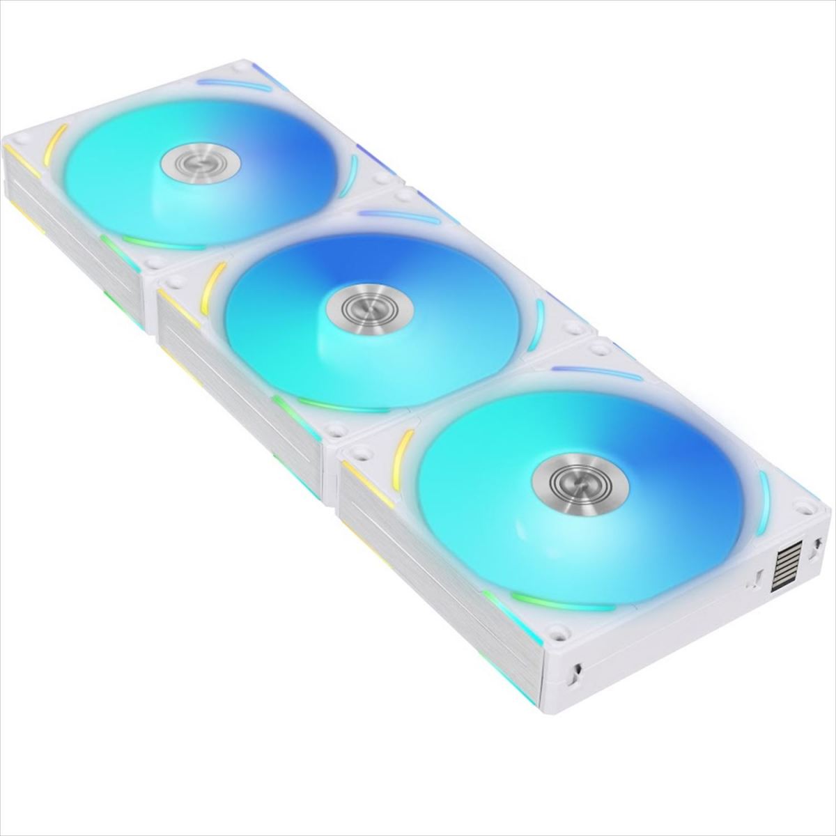 ファンを連結し結合部分から電力とARGB信号を伝達させており一本のケーブルモジュールからそれらを供給している「UNI FAN」はファンが増えるほどケーブルマネージメントが煩雑になるのを防ぐ、画期的な冷却ファンですが、今回のV2モデルは、新たに18cmの延長ケーブルを使用することでファンの2つのクラスターをブリッジして最大3+3のデイジーチェーンクラスターを作成することが可能になりました。