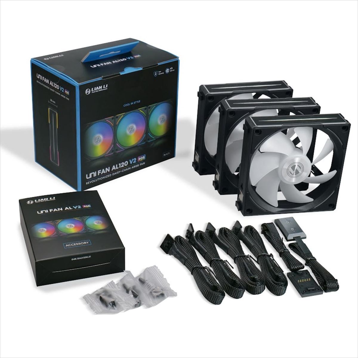 「AL120 V2」および「AL140 V2」は、新たに18cmの延長ケーブルを使用することで2つのファンのクラスタ同士をブリッジして最大3+3のデイジーチェーンクラスタを作成することが可能になりました。